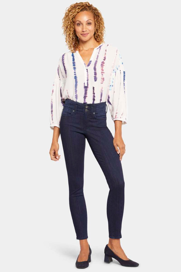 Here’s the skinny—we’ve got the jean you need for a second-skin fit with stretch and comfort that’s second to none. NYDJ’s Ami Skinny Jeans in Sure Stretch® Denim flatter every inch of you, giving you the sculpted legs, tucked tummy and lifted curves you love. Our unique Lift Tuck® Technology helps flatten in the front by using a proprietary slimming panel with a patented criss-cross design, while Sure Stretch® denim technology gives you the full range of movement and serious comfort you crave from your slim-fit styles. Features four-pocket styling, zip fly and double button closures. Highway is a rich dark indigo wash with only subtle wear on the pocket scoops and back waist.