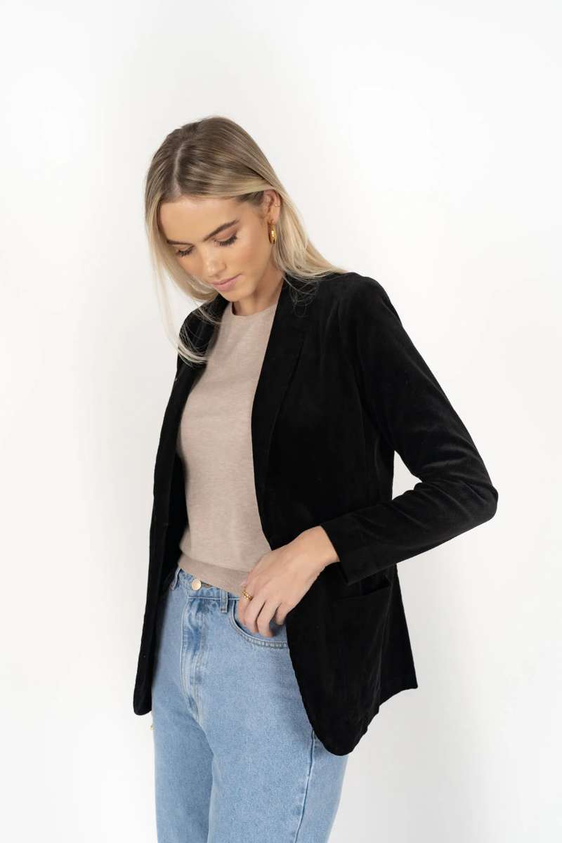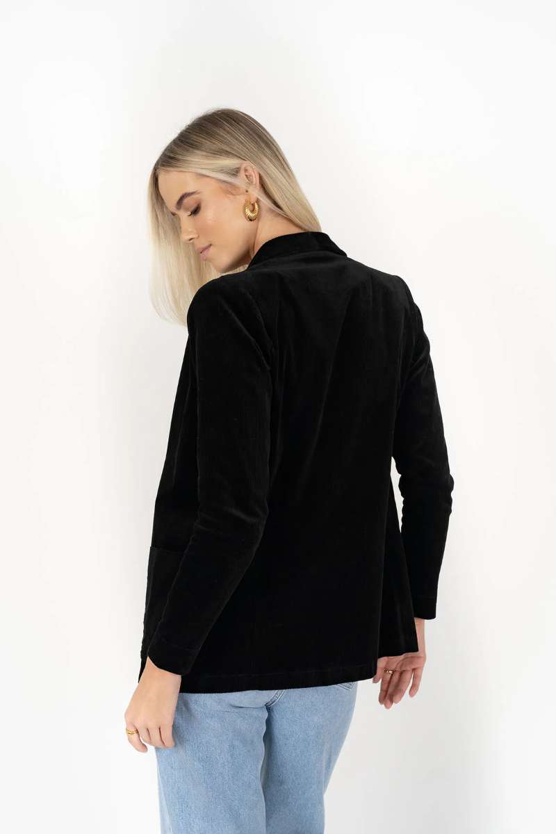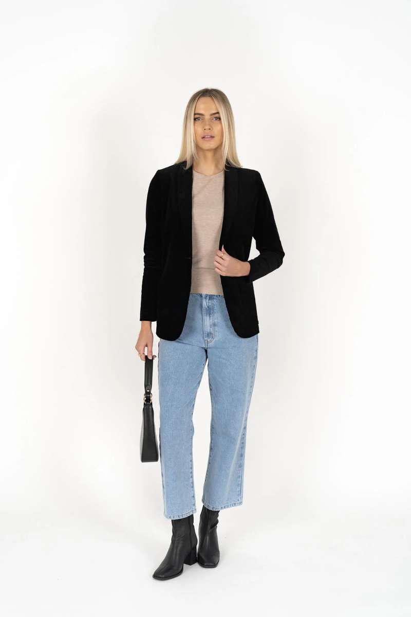 Our Blondie Jacket is an all-occasion blazer, and an essential layer with a streamlined look that dresses up a casual outfit in a flash. Create a corduroy capsule by matching the Blondie Jacket with our Fleetwood Cord Jeans or Suki Cord Pants.