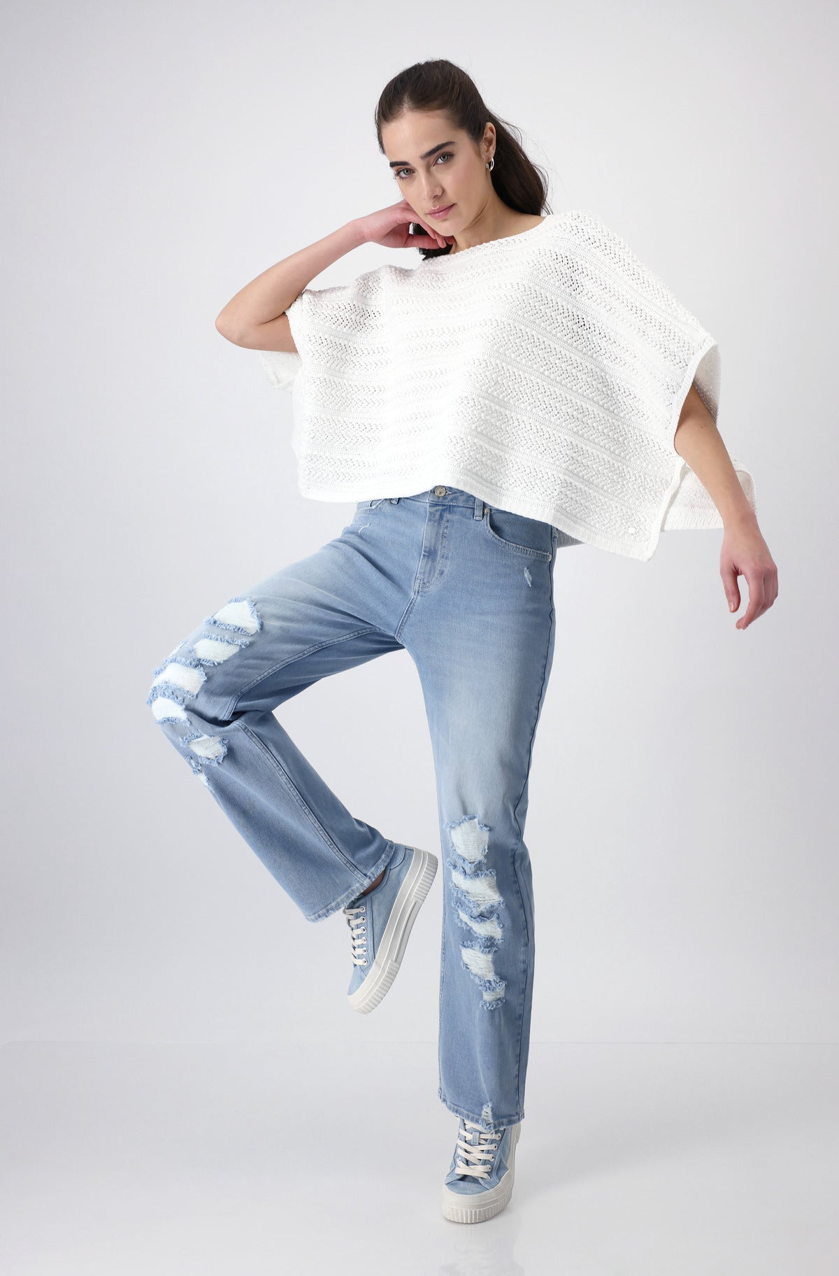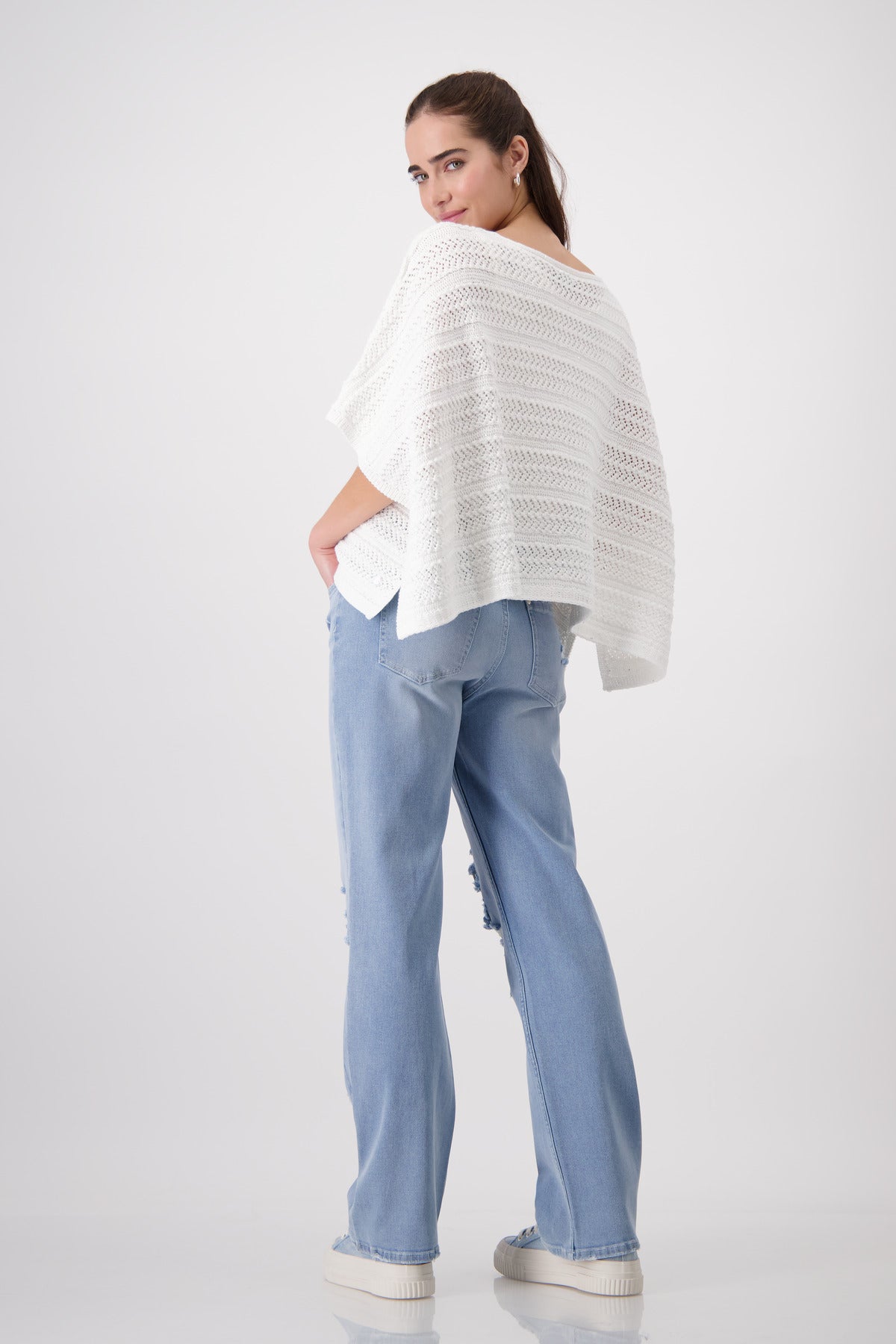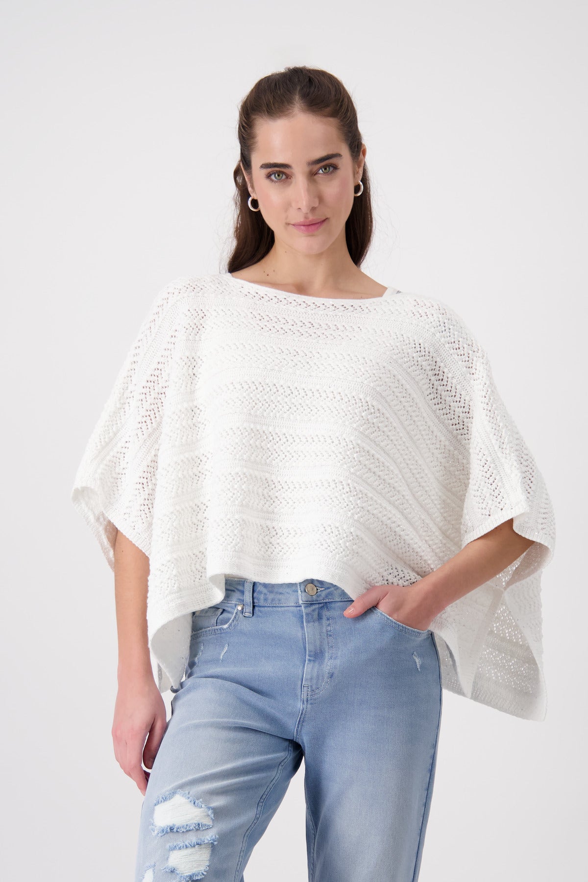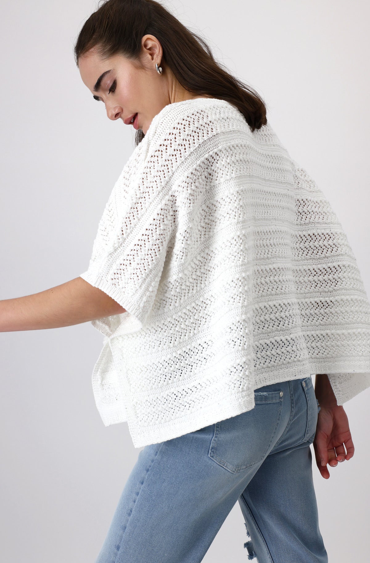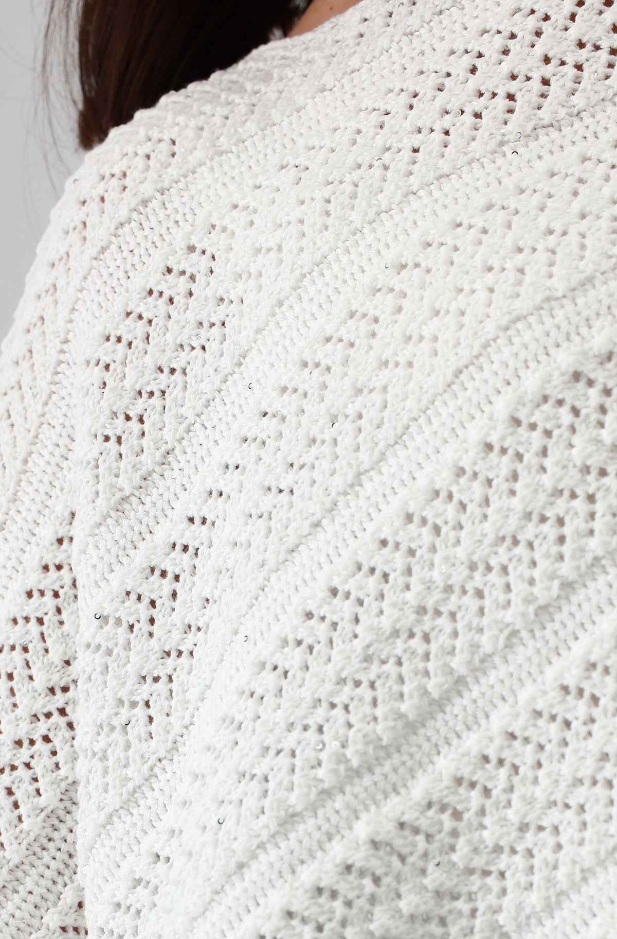 The poncho is embroidered with mini sequins all over and has an attractive cable stitch pattern.