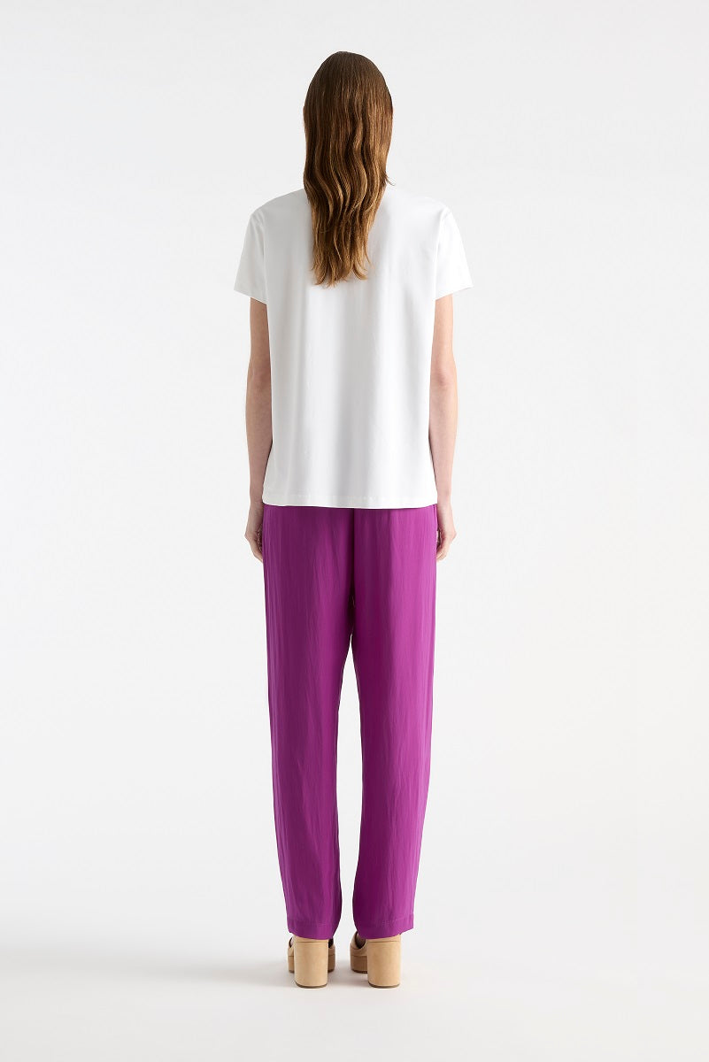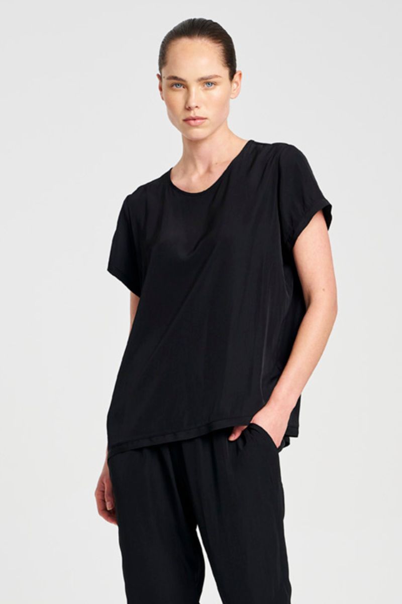 An essential wardrobe piece, the Transit T boasts an effortless, slightly loose fit. Crafted from the smooth, non-stretch Maché fabric, it features a scooped neckline and short sleeves, making it ideal for layering or standalone wear.