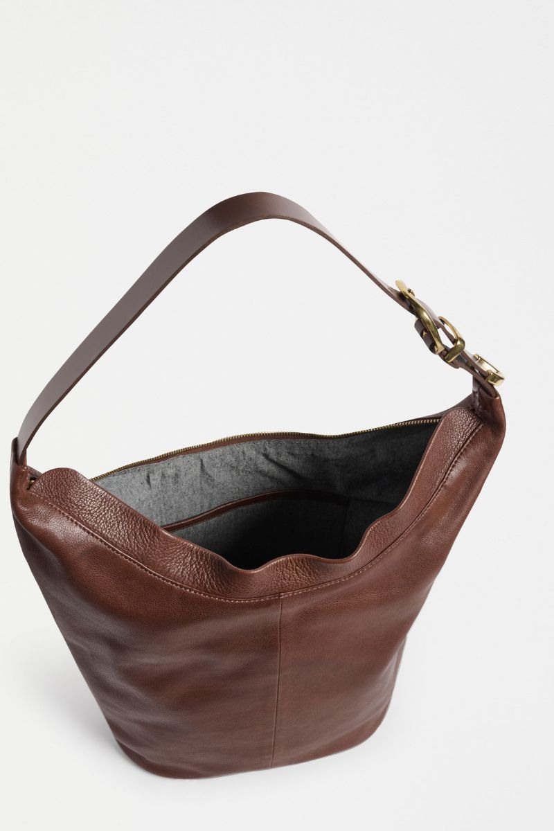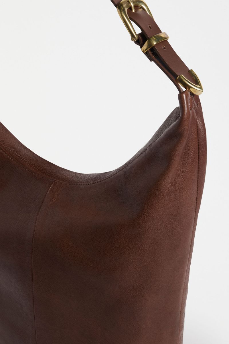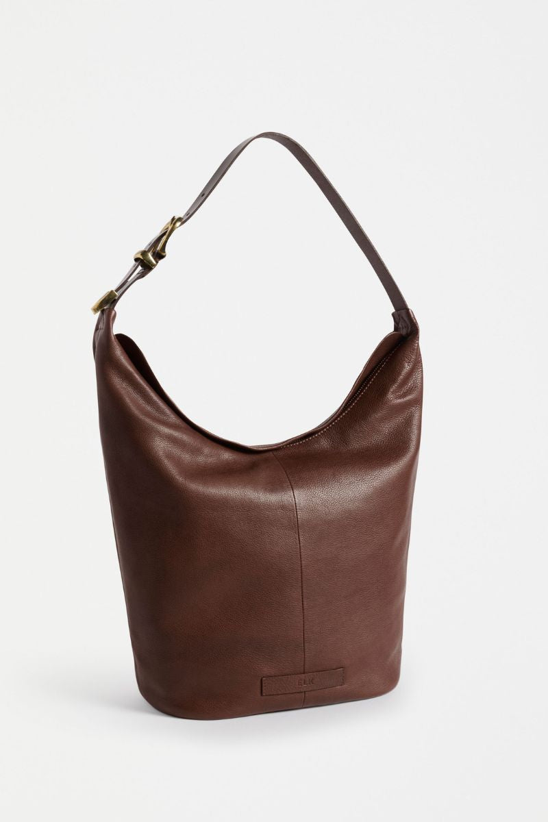 The Lumme Tote Bag a large design shoulder bag in a soft bucket bag shape with a built-in strap crafted from belting material with nods to western-bohemian detailing. The relaxed, slouchy design and generous proportions make this bag perfect for daily use