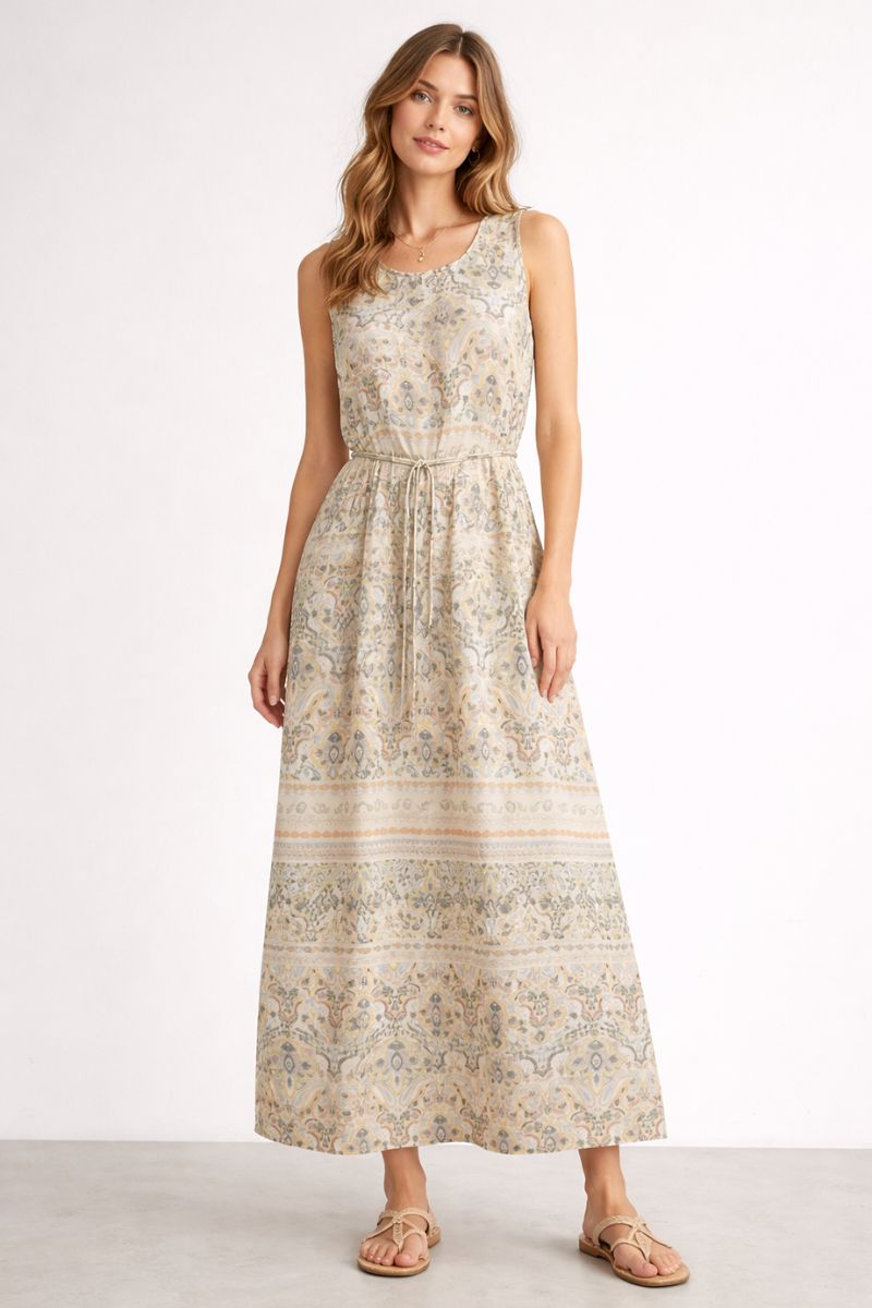 Soft, fluid, and quietly luxurious, the Lula Mimi Dress by Mos Mosh is an effortlessly elegant option for warm days and relaxed occasions. Designed with a sleeveless silhouette, this printed dress drapes beautifully on the body, offering a refined yet easy-to-wear feel.