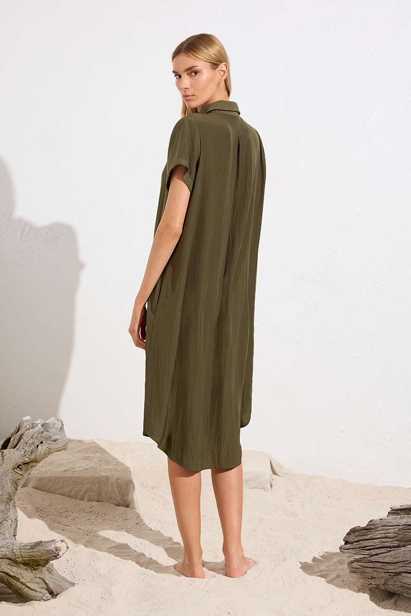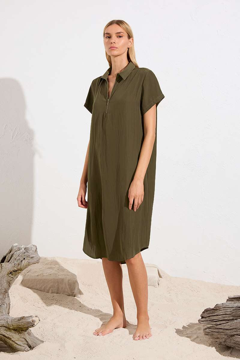 Crafted from Mela Purdie's Mache, featuring a relaxed fluidity & smooth lustre surface. The SS Zip Dress features a zip opening through the collar and curved hemline.