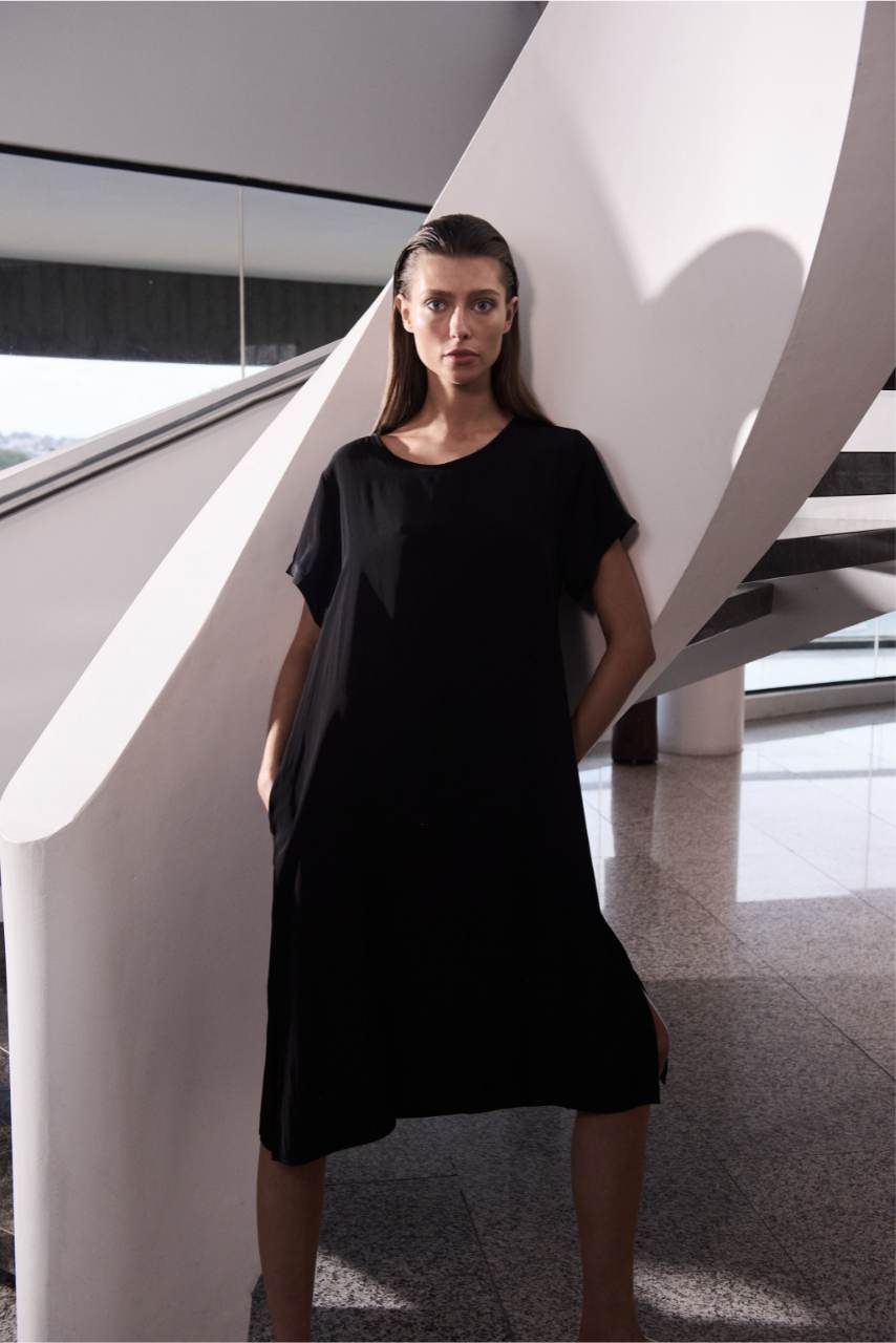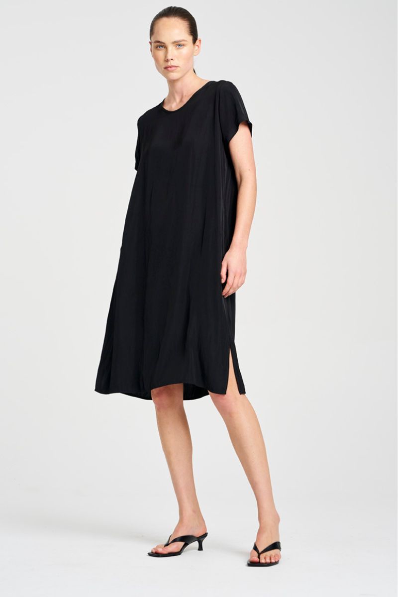 Mela Purdie Transit T Dress Short sleeved round neck  in Black The Perfect Travel Dress.
