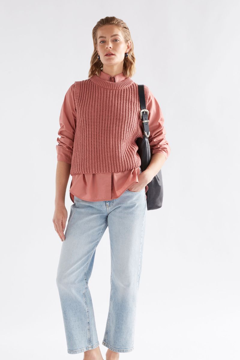 The Arp Vest brings versatility and structure to transseasonal layering. This chunky knit vest is crafted from 100% organic cotton, in a ribbed design. Featuring a thick ribbed neckline and armholes that create definition and a slightly cropped hem. Layer over your favourite shirt or dress for an office outfit or with casual tees and tops for a more relaxed off-duty look or wear solo when the temperature rises
