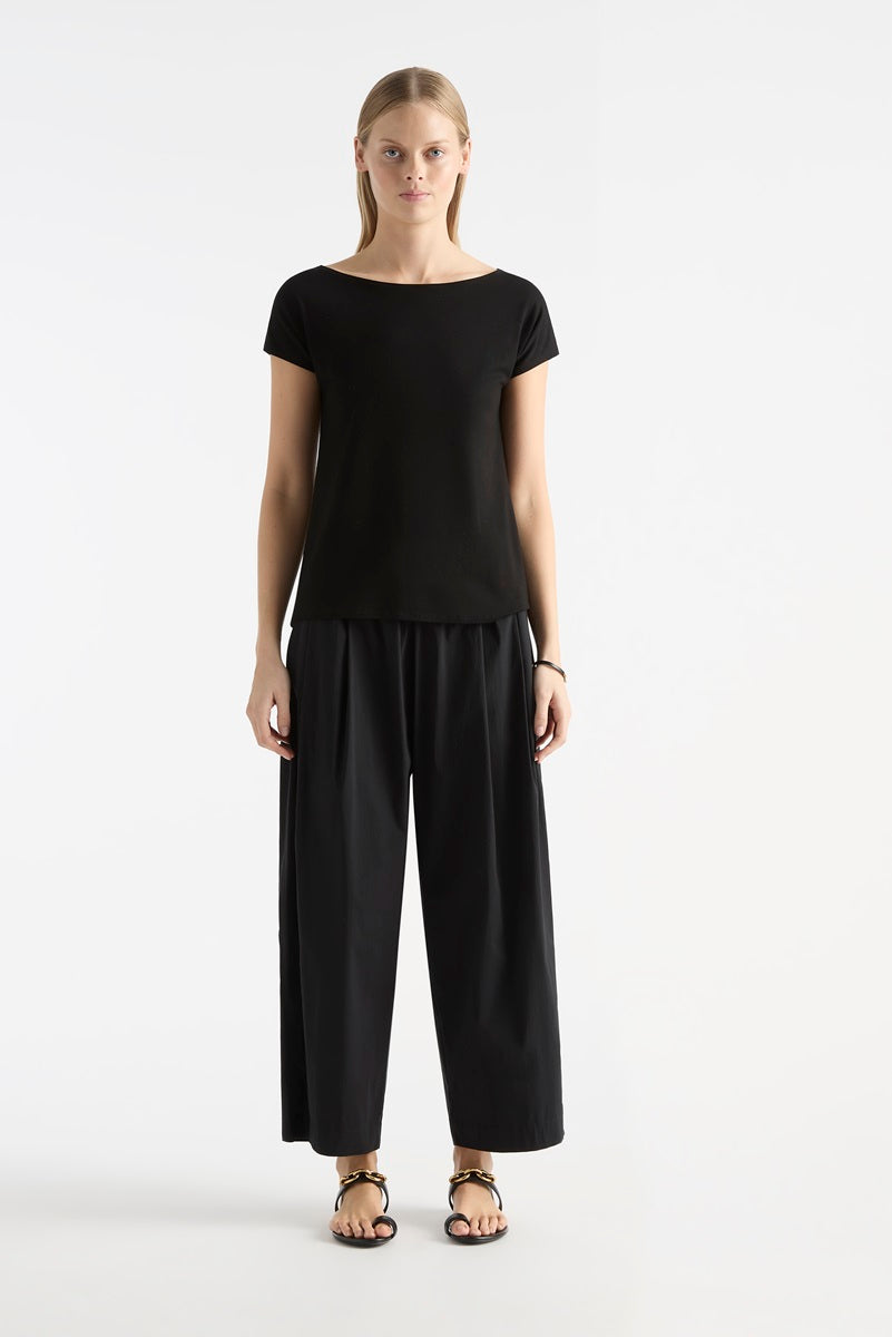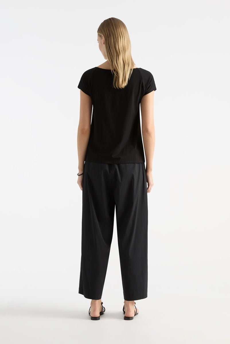 Crafted in Mela Purdie's heritage Mid weight Matte Jersey. The Raglan Shell is a timeless wardrobe staple. Featuring a flattering boat neck & cap sleeves, this is an elegant all occasion wardrobe addition.