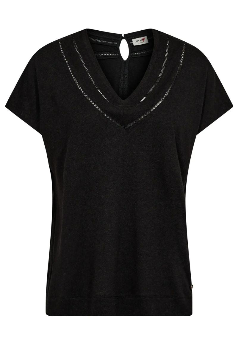 V-Neck T-Shirt with Cut-Out Detail in Black by Mos Mosh