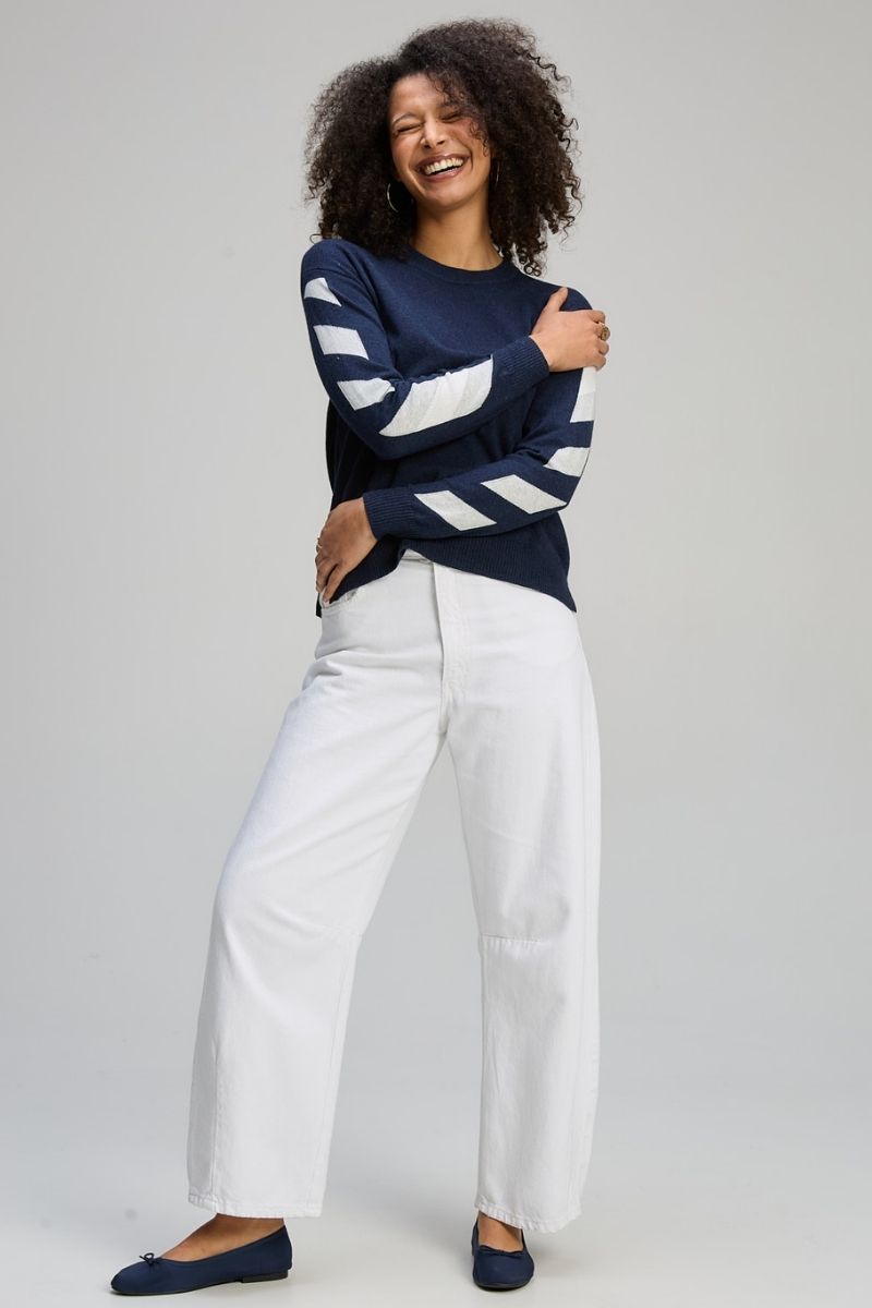 Dark Denim Accent Sleeve Jumper by Zaket & Plover
