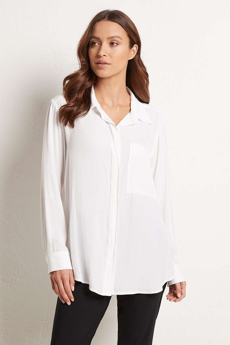 Crafted in Mela Purdie's smooth, airflow finish Mache, the Single Pocket Shirt is a heritage piece. Designed to be your most comfortable and figure flattering dress shirt.