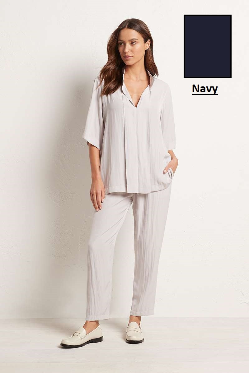 Bevel Neck Plaza in Navy F67 8245 by Mela Purdie