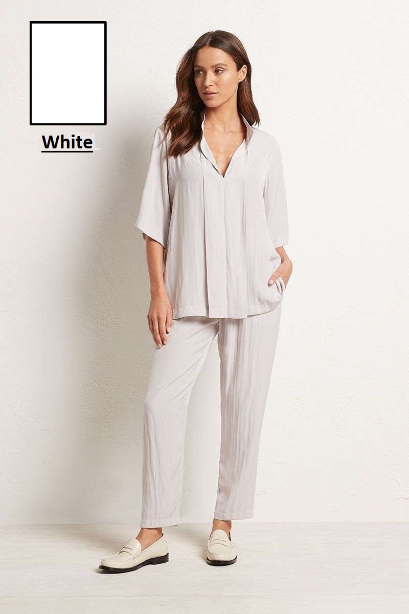 Cut from Mache, known for its relaxed fluidity and smooth lustre surface. The Bevel Neck Plaza features sophisticated pleat detailing down the front & a flattering elbow length sleeve.