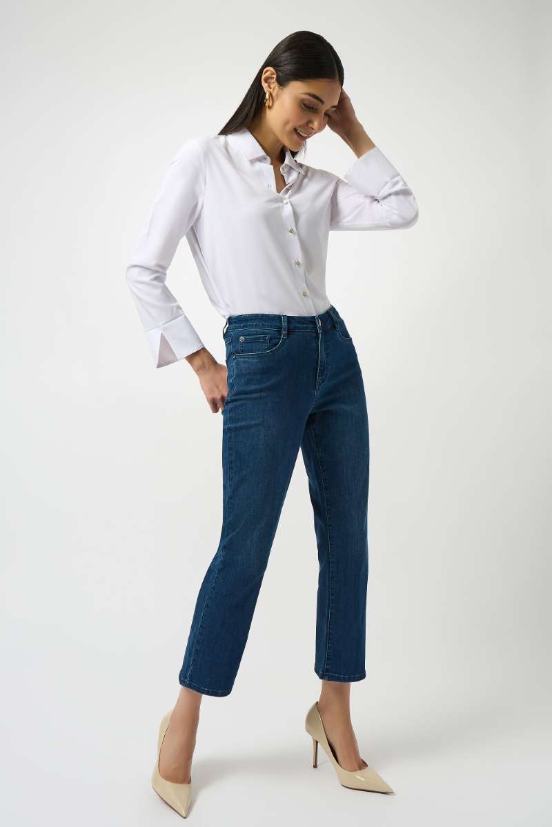 Joseph Ribkoff’s Featherweave Denim delivers the look of polished denim with the feel of a feather-light fabric. Designed for all-day wear, it offers a soft stretch that moves with you, crease-resistance for effortless travel, and a smooth finish that elevates every outfit.