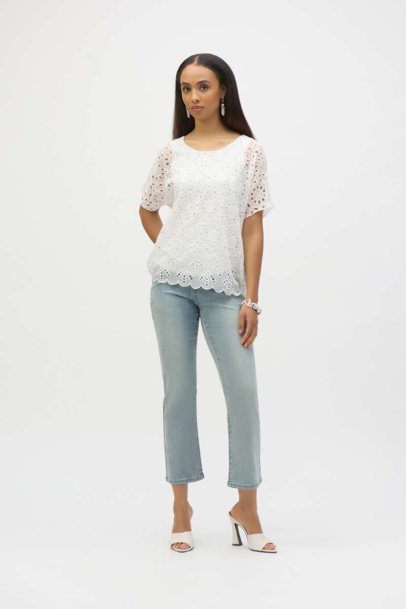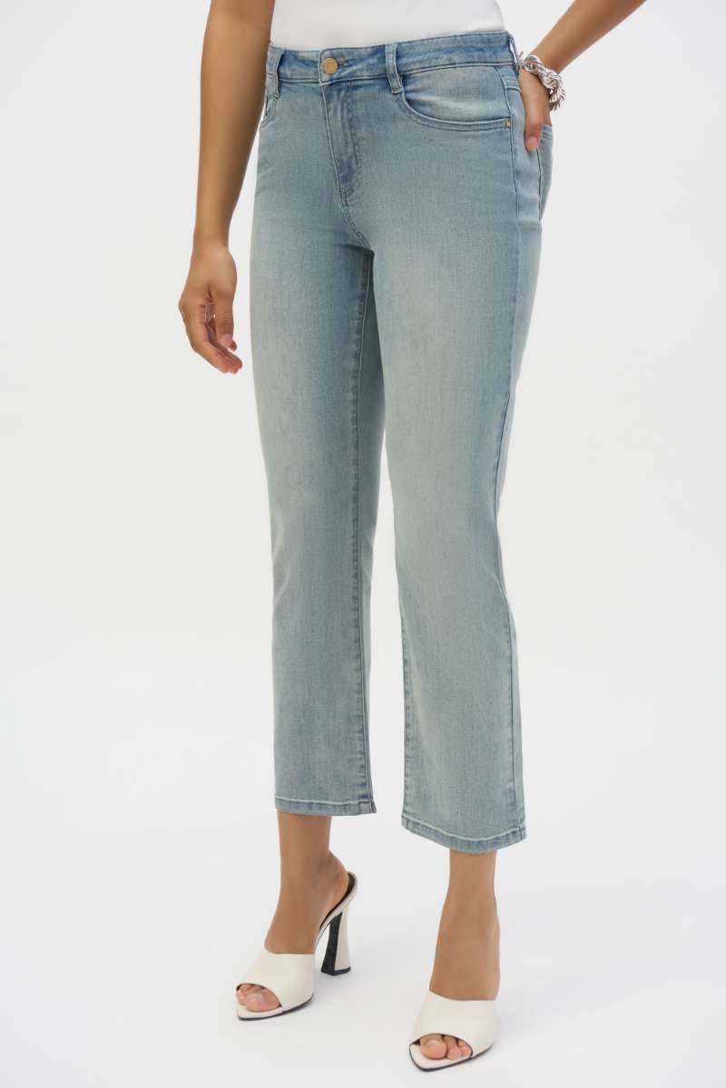Discover denim that doesn’t weigh you down. Featherweave is crafted to be lightweight yet durable, with a flattering fit and silky touch against the skin. It’s the perfect balance of comfort and sophistication—ideal for pairing with Joseph Ribkoff tops or a tailored Ribkoff jacket.