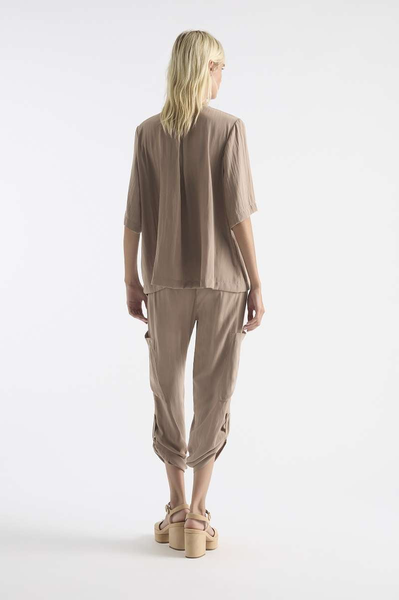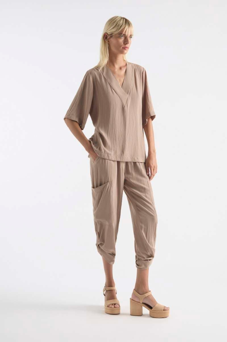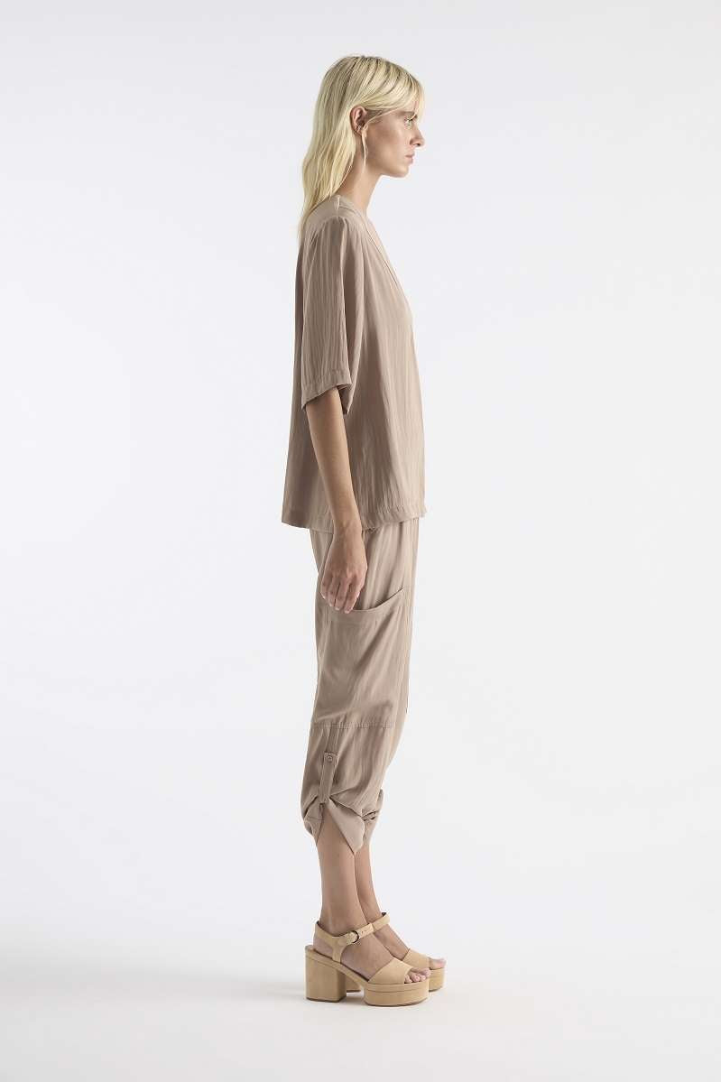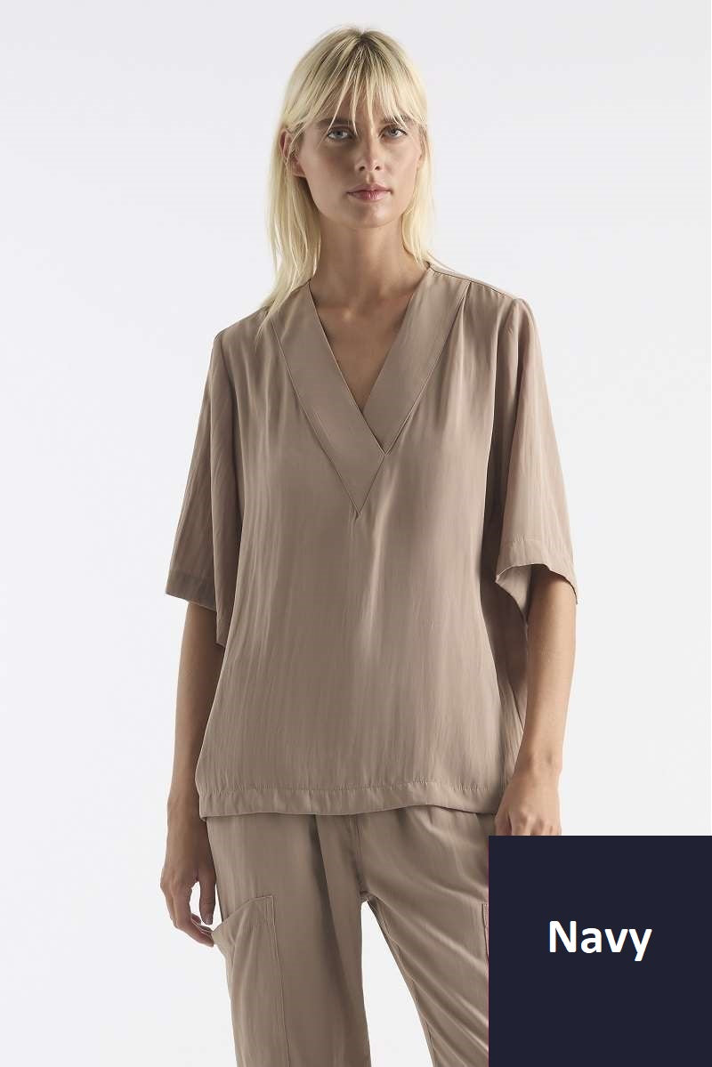 Crafted from Mela Purdie's Mache, featuring a relaxed fluidity & smooth lustre surface. The Venice Plaza features a firm open V Neck and boxy fit through the sleeve and body.