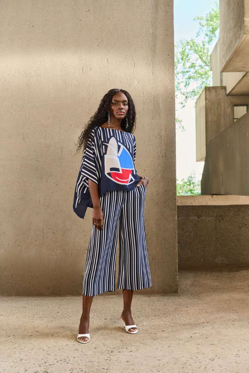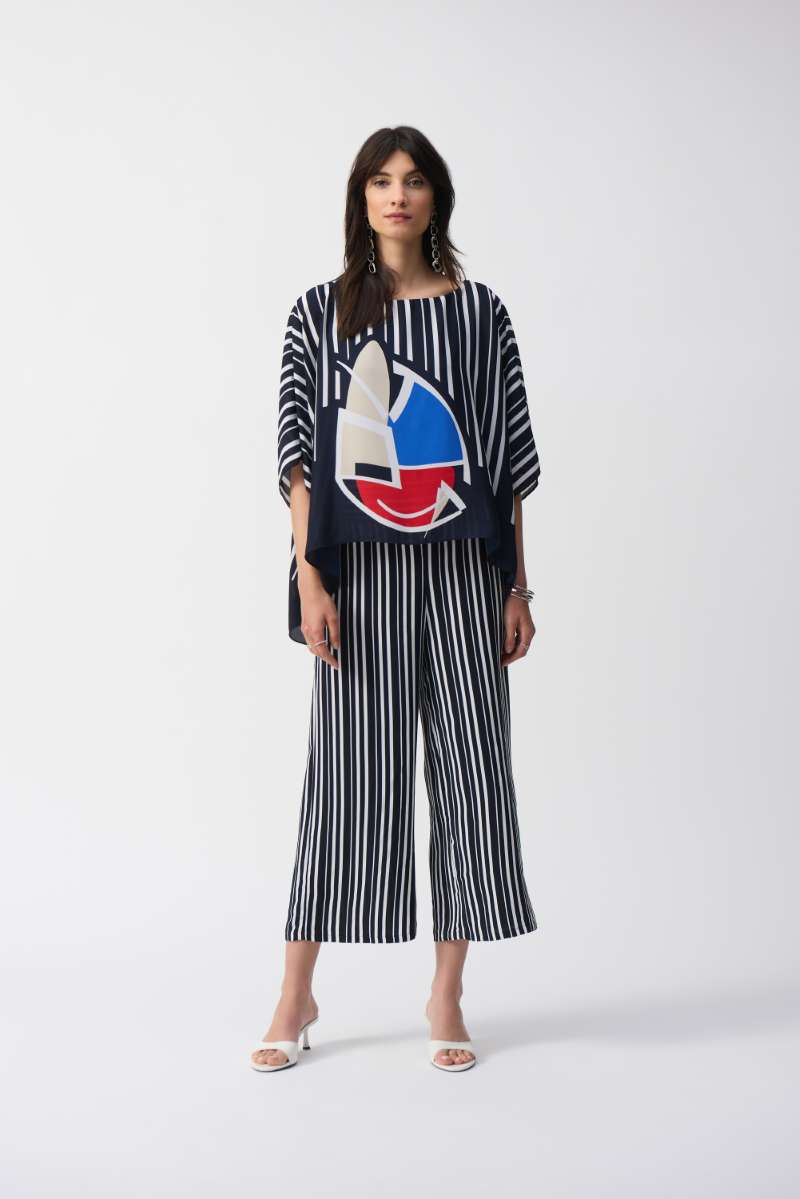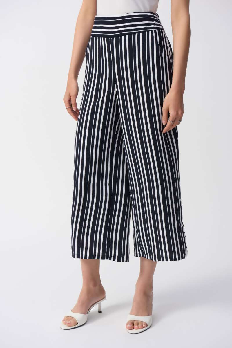 Woven Stripe Print Culotte Pants in Vanilla/Midnight Blue 251162 by Joseph Ribkoff